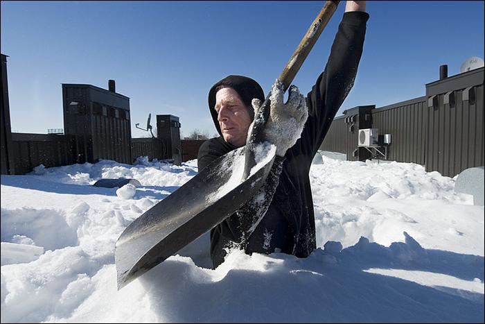 12 déc. : Encore de la neige hier soir. Je n'ai pas pu sortir de ma cour pour aller travailler. Je suis épuisé de pelleter. Crisse de charrue !
